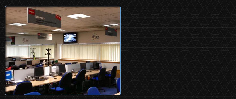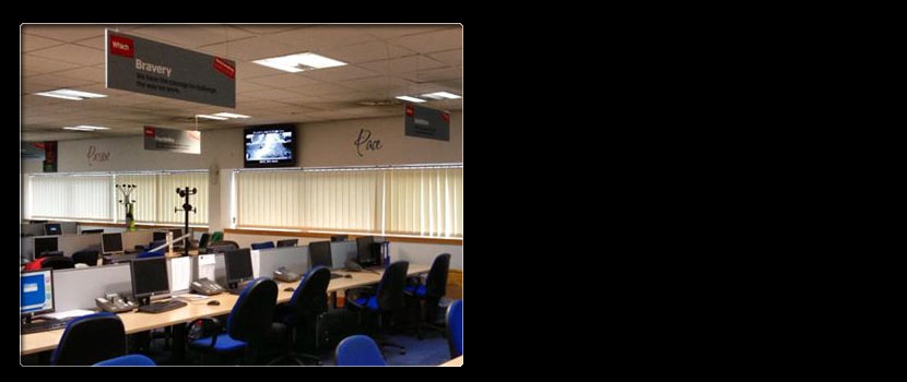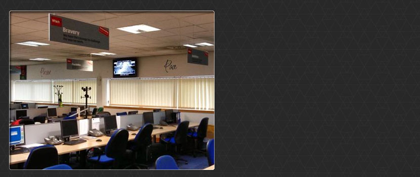 Digital media installations in offices and call centres to provide a focal point for latest company news and general background information